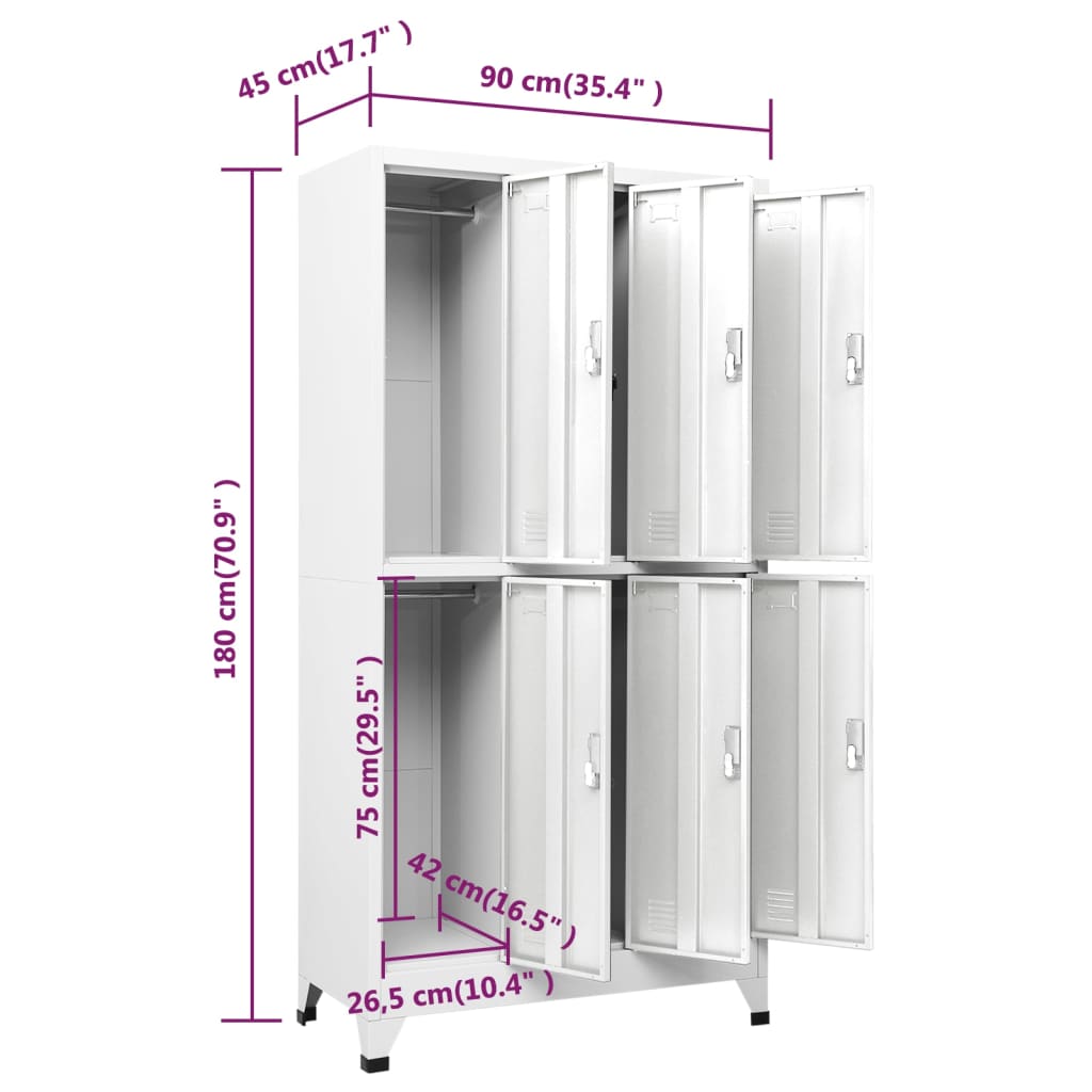 Notre Armoire à casier avec 6 compartiments Acier met l’accent sur la sécurité de vos effets personnels et sur la prévention des incidents. Pour assurer un maintien stable, veuillez utiliser le kit de fixation murale inclus. Le nettoyage est facilité par la nature non-poreuse de l’acier, garantissant ainsi une hygiène optimale dans les lieux partagés.