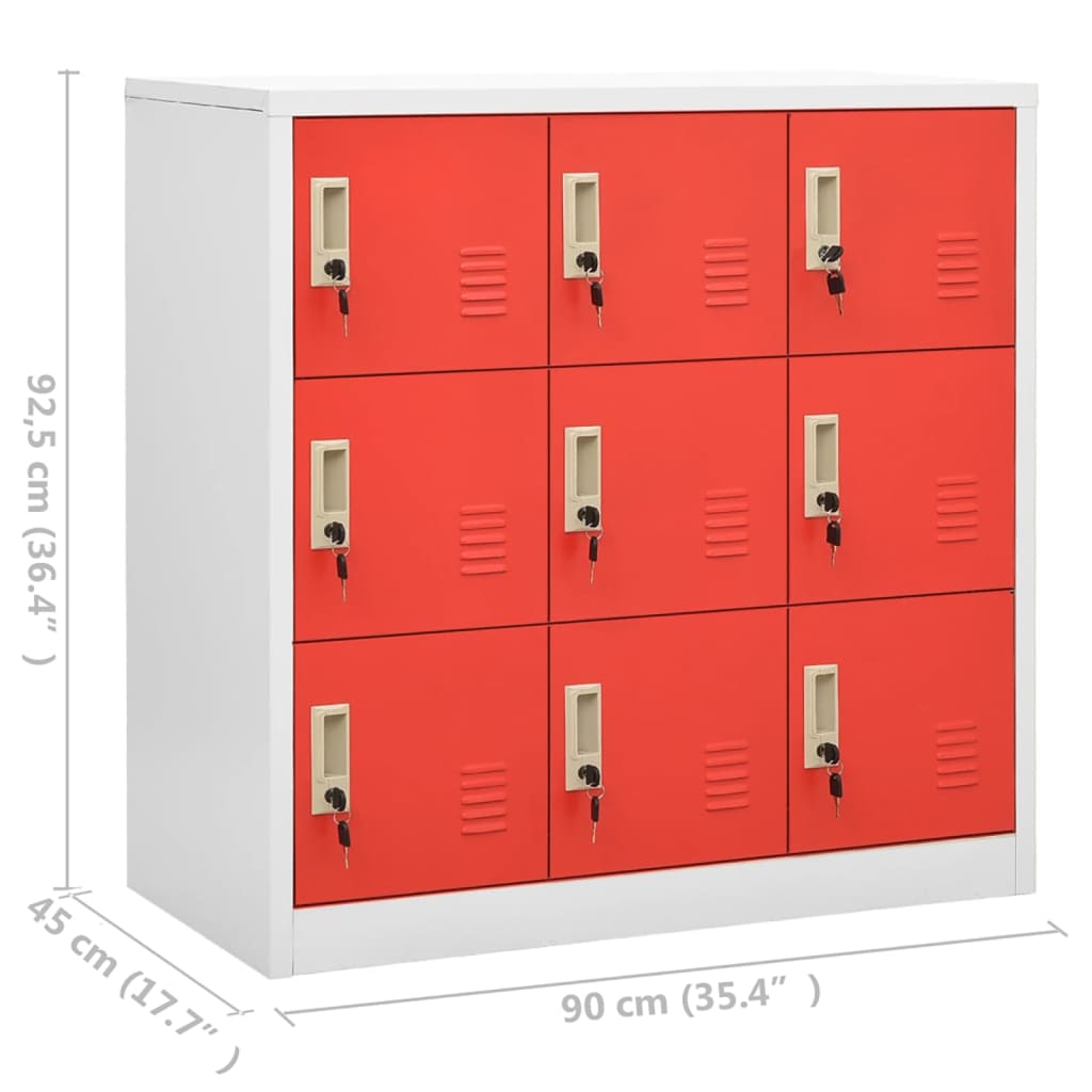 Améliorez l’efficacité de votre rangement grâce à notre armoire à casiers Gris clair et rouge 90x45x92,5 cm Acier, une addition parfaite tant pour les milieux professionnels que les espaces personnels. La construction en acier solide assure longévité et une maintenance simplifiée. Gardez vos effets personnels en sécurité et organisés grâce à cet élégant meuble, doté de serrures robustes. Spacieux et polyvalent, il offre suffisamment de place pour entreposer chaussures, sacs, documents et bien plus. Idéal pour les établissements éducatifs ou les environnements de travail afin de conserver divers objets de façon structurée.