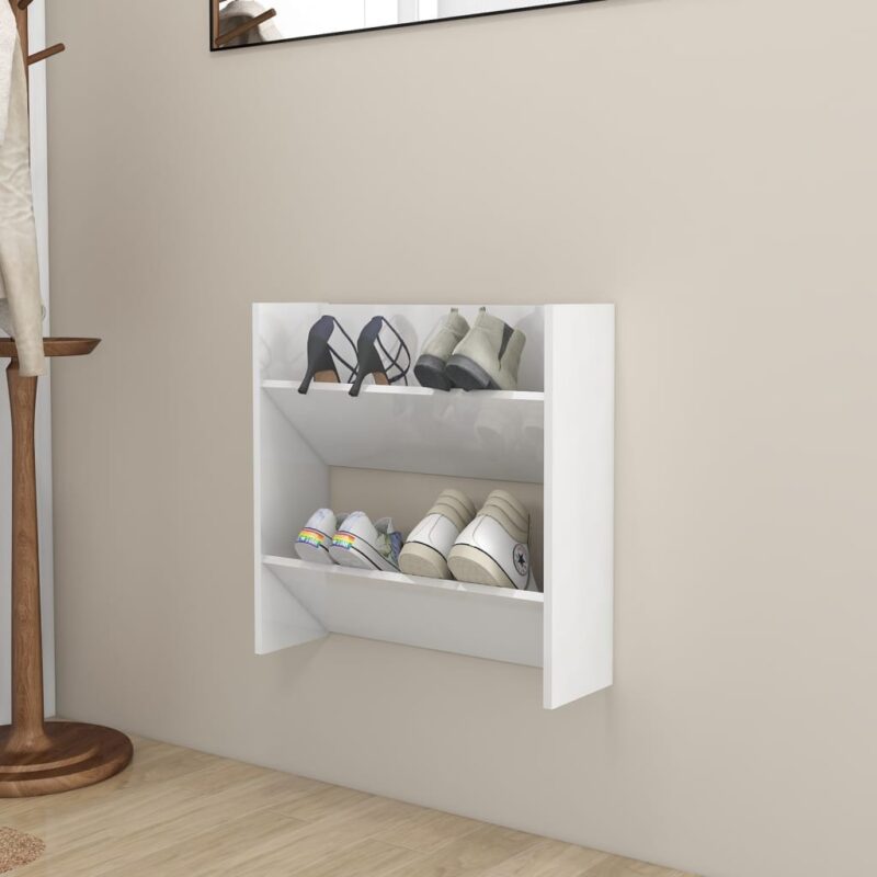 L’Armoire à chaussure murale 2 pcs Blanc brillant est une solution idéale pour gérer votre collection de chaussures sans sacrifier l’esthétique moderne. Son design suspendu est un véritable atout pour optimiser chaque recoin de votre maison.