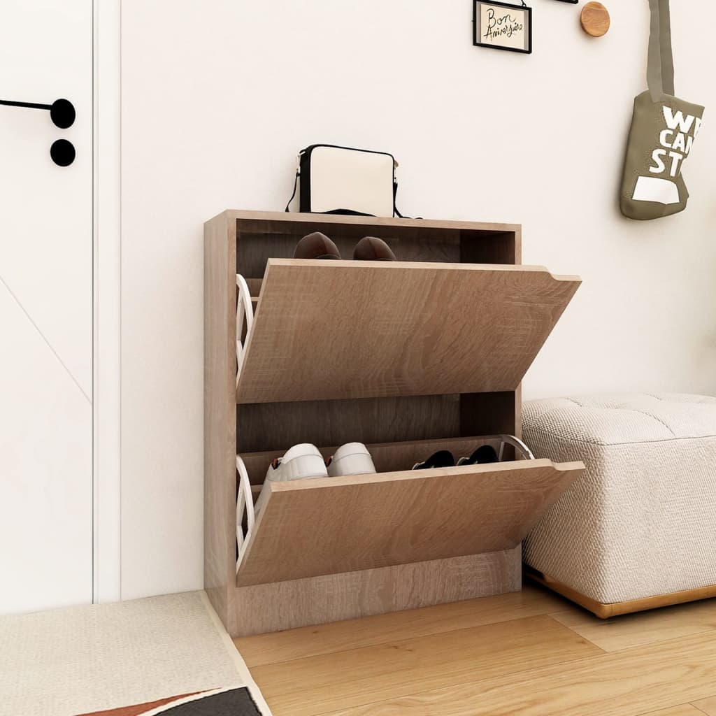 Trouvez l’équilibre parfait entre fonctionnalité et esthétique avec l’Armoire à chaussures 2 portes Chêne Sonoma 59x24x74cm Aggloméré, la solution idéale pour dire adieu au désordre de chaussures. Conçu pour s’intégrer harmonieusement dans tout type de décor, cet accessoire de rangement est aussi stable que durable. Avec sa capacité généreuse répartie en deux sections internes, vos souliers seront toujours rangés et accessibles.