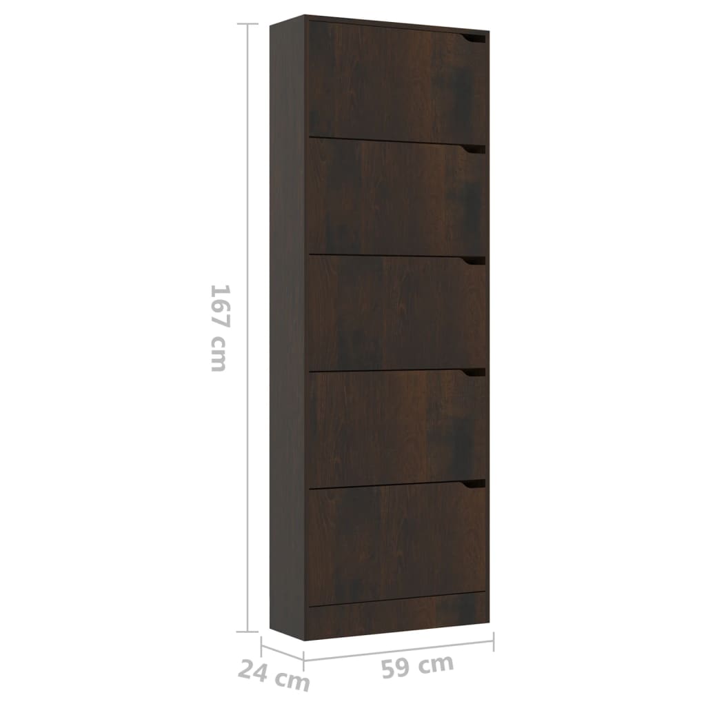 Découvrez l’optimale Armoire à chaussures 5 portes Chêne fumé 59x24x167 cm Aggloméré