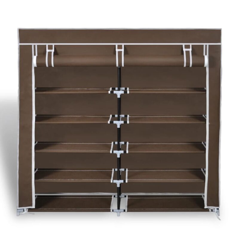 Optimisez l’organisation de vos chaussures avec l’Armoire à chaussures avec housse 115 x 28 x 110 cm Tissu Marron. Imaginez ne plus jamais fouiller à travers un tas désordonné pour trouver votre paire préférée. Cet élégant meuble de rangement peut accueillir jusqu’à 30 paires grâce à son système double et ses 5 niveaux intelligemment conçus.