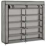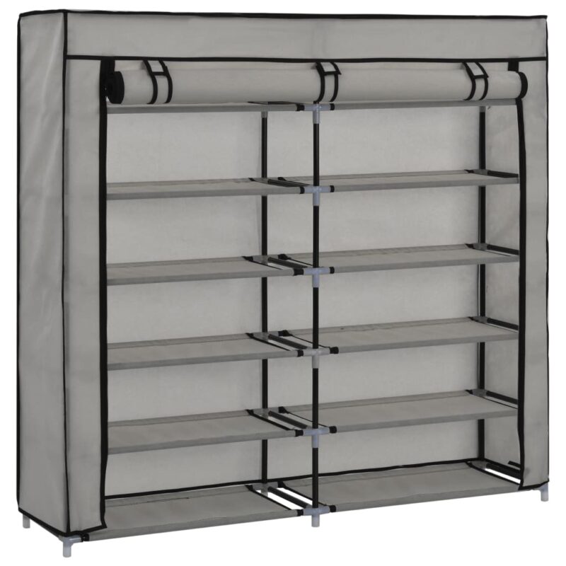 Découvrez le rangement optimal avec l’Armoire à chaussures avec housse Gris 115x28x110 cm Tissu