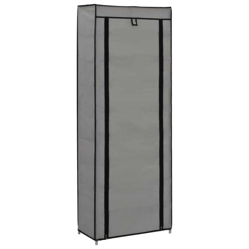 Investissez dans l’armoire à chaussures avec housse Gris 57x29x162 cm Tissu et dites adieu au désordre désespérant de chaussures. Son esthétique épurée et sa fonctionnalité répondront sans doute à vos besoins en matière de rangement de chaussures.
