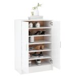 Équipée de portes discrètes, l’armoire préserve l’intimité de vos chaussures, les dissimulant élégamment et les protégeant de la poussière. Elle offre un volume appréciable pour accueillir un grand nombre de paires, permettant ainsi de libérer votre espace des encombrements.