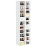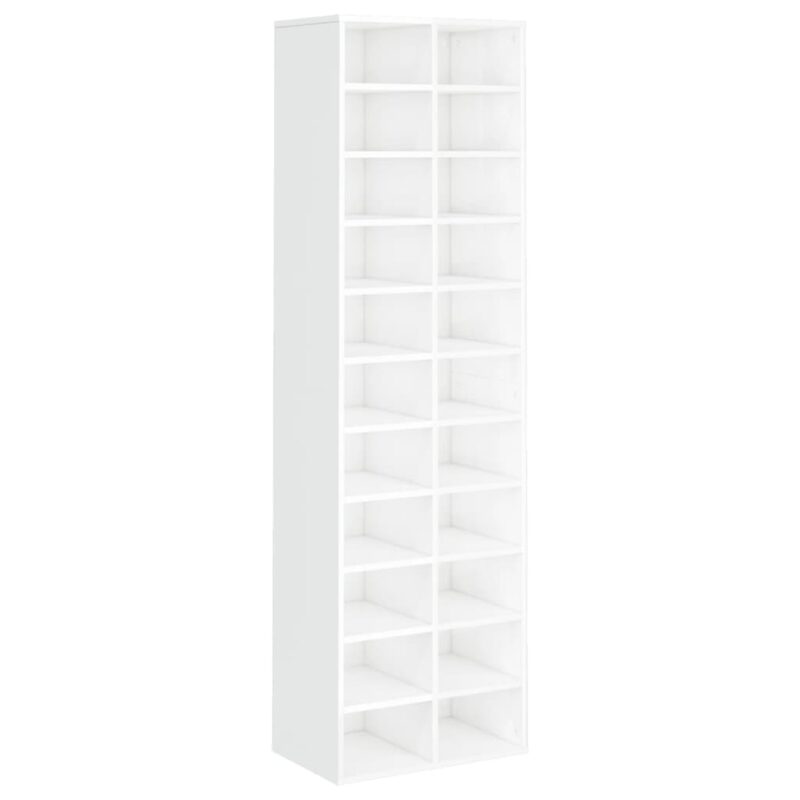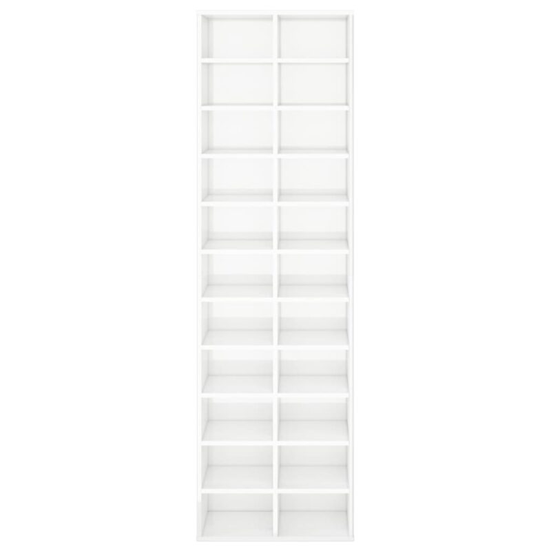 Optez pour un rangement élégant de vos souliers avec notre Armoire à chaussures Blanc brillant 54x34x183 cm Aggloméré. Confectionnée avec de l’aggloméré de haute qualité, cette armoire promet solidité et longévité. Son allure épurée et son fini lumineux se marient aisément avec n’importe quel décor. Cette armoire peut aisément accueillir une grande sélection de chaussures, de boîtes et d’autres effets personnels grâce à ses 22 compartiments spacieux. Elle est fournie avec l’équipement nécessaire pour une fixation murale sécuritaire afin de prévenir tout risque de basculement. Un simple coup de chiffon humide suffit pour nettoyer ce meuble.