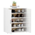 Transformez le désordre de chaussures qui encombre votre espace en un coin rangé et stylé avec cette élégante armoire à chaussures. Sa finition blanc brillant ajoute une touche de fraîcheur à votre intérieur, que ce soit dans l’entrée ou dans votre chambre. Sa conception en aggloméré de haute qualité promet robustesse et longévité pour une conservation optimale de vos chaussures. Avec ses 5 étagères spacieuses cachées derrière 2 portes battantes, cet organisateur est une solution pratique pour garder vos souliers accessibles, tout en les protégeant efficacement de la poussière et des regards.