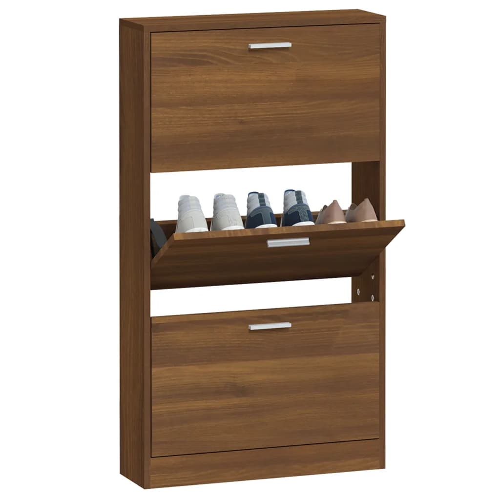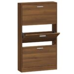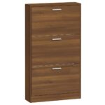Équipée de trois tiroirs spacieux, l’armoire à chaussures chêne marron promet un espace conséquent pour classer astucieusement vos chaussures tout en les gardant facilement accessibles.
