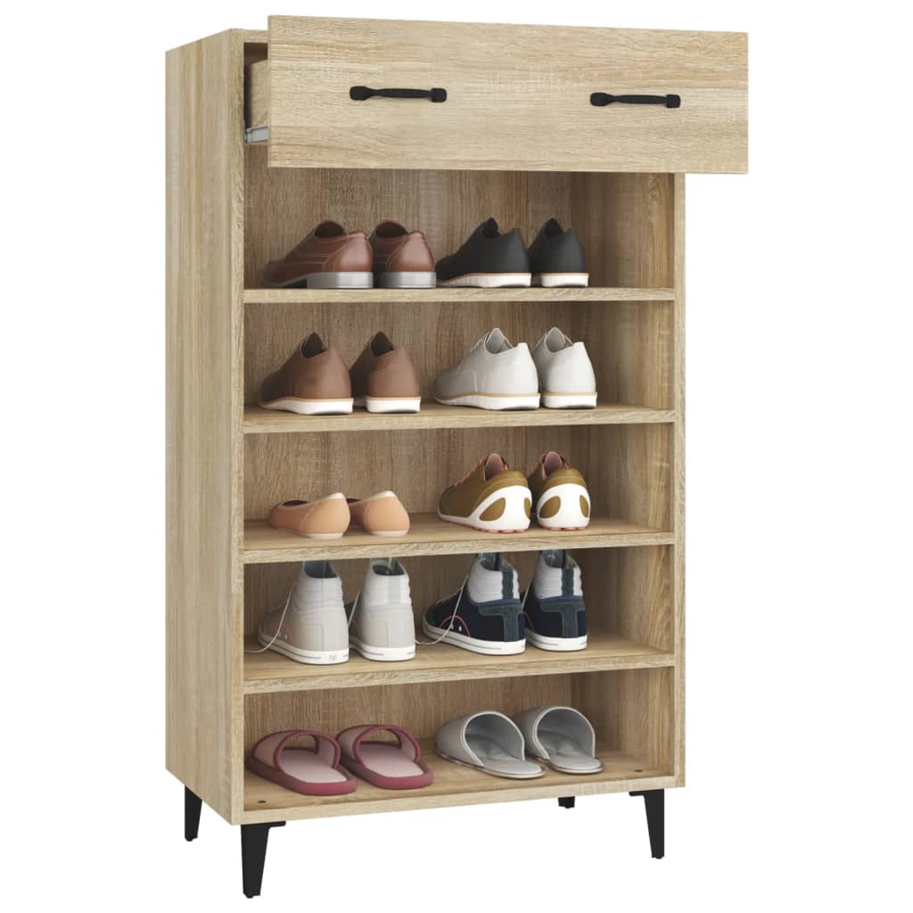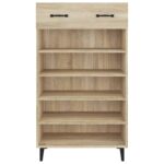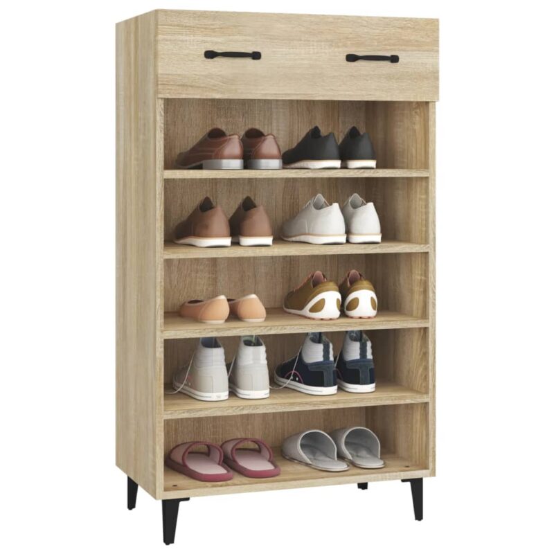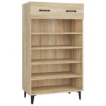 Découvrez l’élégante et fonctionnelle Armoire à chaussures Chêne sonoma 60x35x105cm Bois d’ingénierie, conçue pour apporter une solution de rangement optimale dans votre espace de vie. Dites adieu au désordre de chaussures éparpillées avec style. Réalisée à partir d’un bois d’ingénierie hautement qualitatif, l’armoire bénéficie d’une surface lisse, d’une grande durabilité, d’une stabilité assuree et elle résiste efficacement à l’humidité.