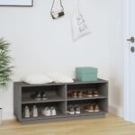 Armoire à chaussures Gris 110x34x45 cm Bois de pin massif 101.99
