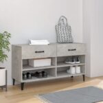 Dites adieu au désordre! Cette chic armoire à chaussures Gris béton 102x35x55 cm Bois d’ingénierie est la solution parfaite pour garder vos souliers bien organisés, tout en les protégeant de la poussière. Dotée d’une construction en bois d’ingénierie, reconnu pour sa robustesse, cette armoire est non seulement durable mais également résistante à l’humidité grâce à sa finition soignée.