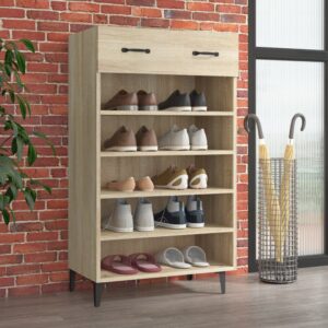 L’étagère spacieuse de cette armoire à chaussures permet de trier facilement vos paires tout en conservant un accès commode à vos affaires. Le dessus robuste de l’armoire est parfait pour mettre en valeur des éléments décoratifs, ajoutant ainsi une touche personnelle à votre foyer.