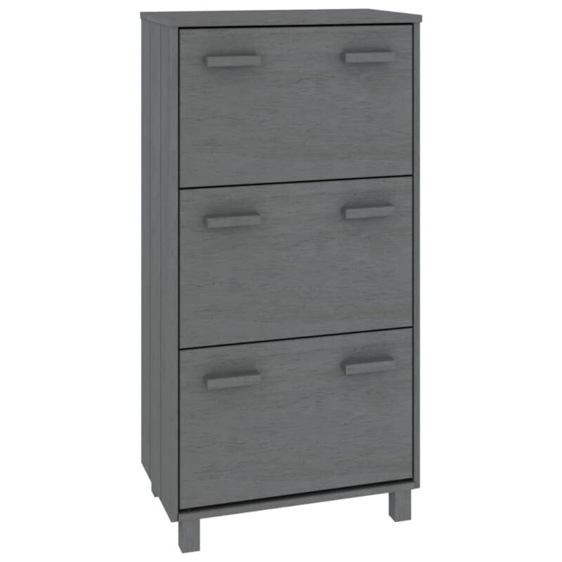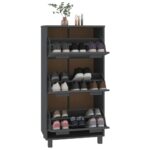Introduisez une touche d’élégance pratique dans votre intérieur avec cette Armoire à chaussures Gris foncé 59,5x35x117 cm Bois de pin. Fabriquée à partir de bois de pin robuste, cette armoire à chaussures assure une durabilité exceptionnelle et une stabilité à toute épreuve. Ses trois compartiments rabattables sont parfaits pour dissimuler et organiser votre collection de chaussures, tout en protégeant vos sols de tout désordre.