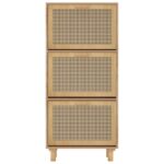 Optimisez le rangement avec l’armoire à chaussures marron en bois d’ingénierie et rotin