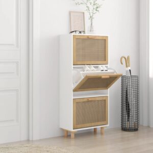 Dotée de deux tiroirs spacieux, cette pratique armoire à chaussures vous permet de garder vos chaussures triées et accessibles. L’ajout de rotin naturel tissé aux façades de tiroir apporte une touche de beauté naturelle et artisanale à l’ensemble.