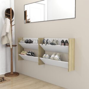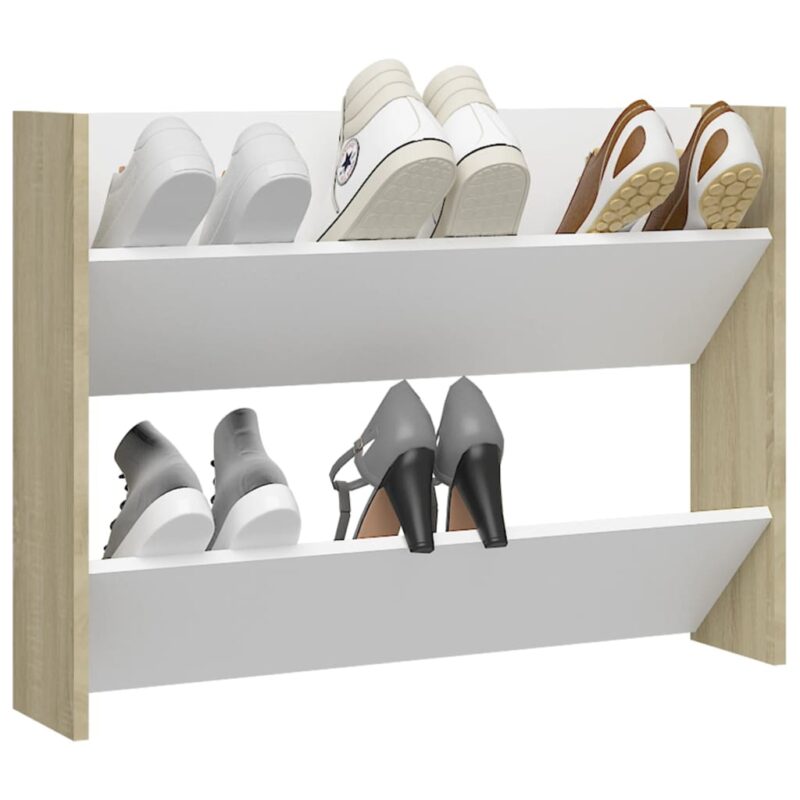 Découvrez l’élégance et la praticité de l’armoire à chaussures murale blanc et chêne Sonoma 80x18x60 cm