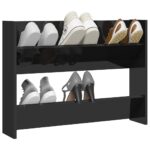 Optimisez votre espace et maintenez l’ordre dans votre intérieur grâce à cette armoire à chaussures murale Noir brillant 80x18x60 cm Aggloméré. Son design épuré et moderne se fondra parfaitement dans n’importe quel décor. Avec ses deux compartiments basculants, votre collection de chaussures sera toujours impeccablement rangée et facile à retrouver. Idéale pour les entrées étroites, cette armoire se fixe au mur, vous permettant de profiter pleinement de votre espace de vie sans encombrement.