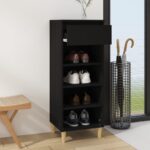 Armoire à chaussures noire en bois d'ingénierie