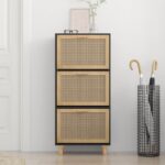 Cette armoire ne manque pas d’espace avec ses trois beaux tiroirs, pour que vos chaussures restent accessibles et ordonnées. L’ajout d’un délicat tissage en rotin naturel sur les tiroirs rehausse le charme de l’ensemble, en alliant utilité et esthétisme.