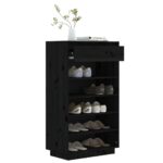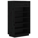 Optimisez le rangement de vos souliers avec cette élégante armoire à chaussures noire 60x34x105 cm. Conçue dans un bois de pin massif de haute qualité, elle assure durabilité et stabilité. Non seulement elle permet de maintenir votre collection soigneusement organisée, mais son plateau supérieur vous offre également la possibilité de mettre en valeur vos objets déco favoris, qu’il s’agisse de photos ou de verdure.