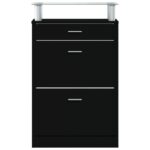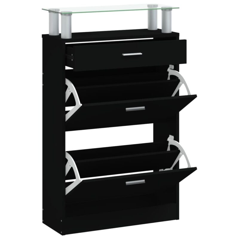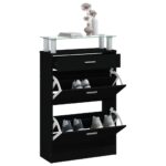 Discover the epitome of sophisticated organization for your footwear collection with this sleek black shoe cabinet. An indispensable addition to your entryway, hallway, living room, or bedroom, it exudes a modern charm that complements your home decor. Crafted from top-notch engineered wood, it promises a polished look combined with durability, stability, and resistance to moisture.