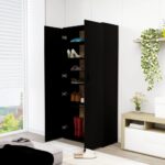 Cette armoire à chaussures noire est équipée de six étagères qui peuvent accueillir diverses paires de chaussures, garantissant que chaque paire a sa place. Les deux portes préservent vos souliers de la poussière et les dissimulent élégamment.