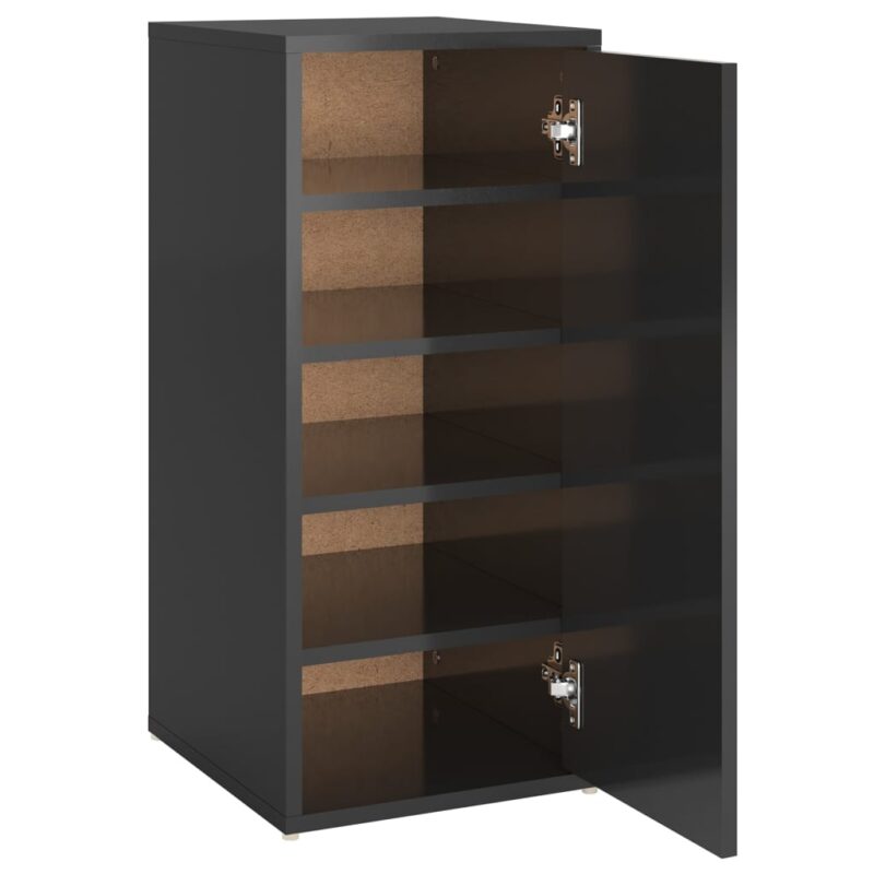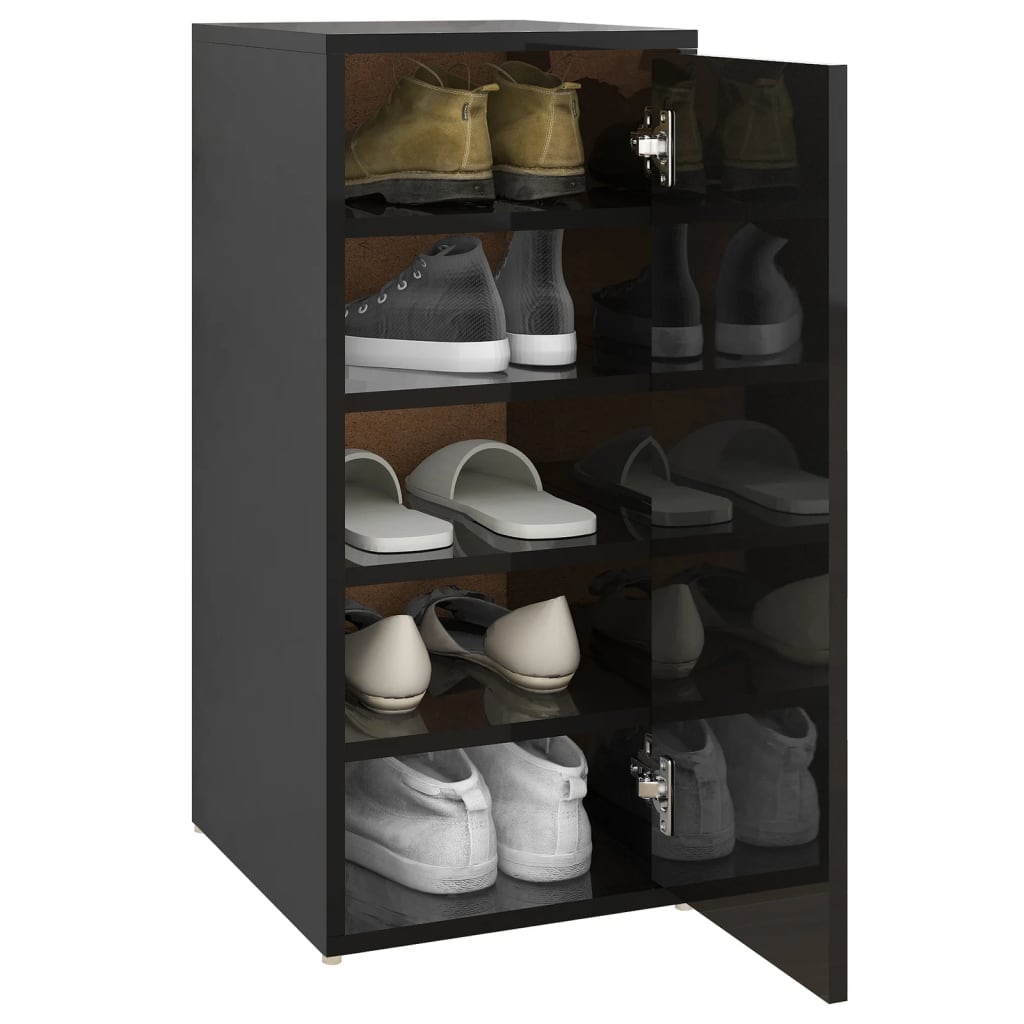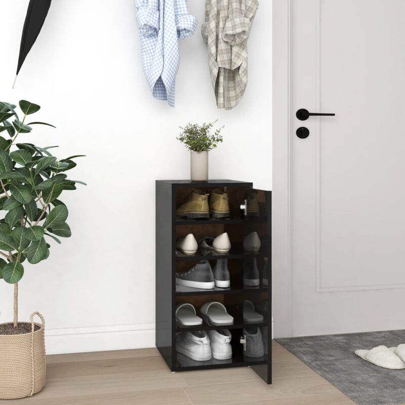 Armoire à chaussures noire brillante en aggloméré avec dimensions