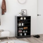 Révolutionnez votre espace avec l’Armoire à chaussures Noir brillant 60x35x92 cm Aggloméré. Parfaitement conçue pour alléger le désordre, cette élégante armoire s’intègrera parfaitement dans n’importe quel décor contemporain. Sa conception robuste en aggloméré de haute qualité lui confère non seulement un éclat séduisant mais garantit également sa longévité. Grâce à ses 7 étagères pratiques, vous pourrez trier et ranger efficacement tout type de chaussures, des baskets décontractées aux bottes élégantes.