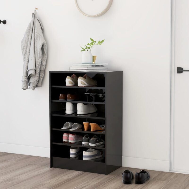 Optimisez votre rangement avec cette armoire à chaussures noire et brillante