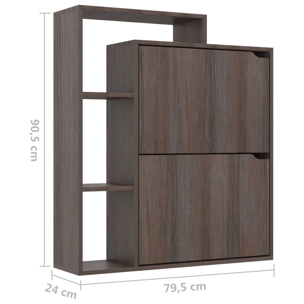 Redécouvrez le plaisir d’un intérieur ordonné avec cette armoire à chaussures Sonoma gris 79,5x24x90,5 cm Aggloméré. Plus qu’un simple meuble, elle supprime l’encombrement de vos sols en donnant à chaque paire de chaussures sa place attitrée. Conçue pour durer, sa robustesse est assurée par la qualité de son aggloméré renforcé. Avec ses deux compartiments, elle offre non seulement un vaste espace pour organiser vos chaussures, mais également la polyvalence de servir de vitrine ou de base pour vos plantes vertes.