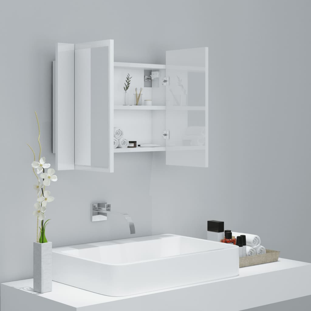 Démarquez-vous avec l’Armoire à miroir de bain à LED Blanc brillant