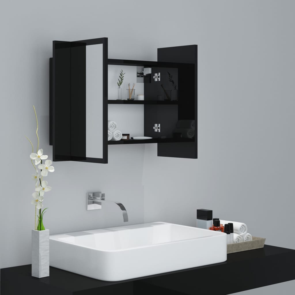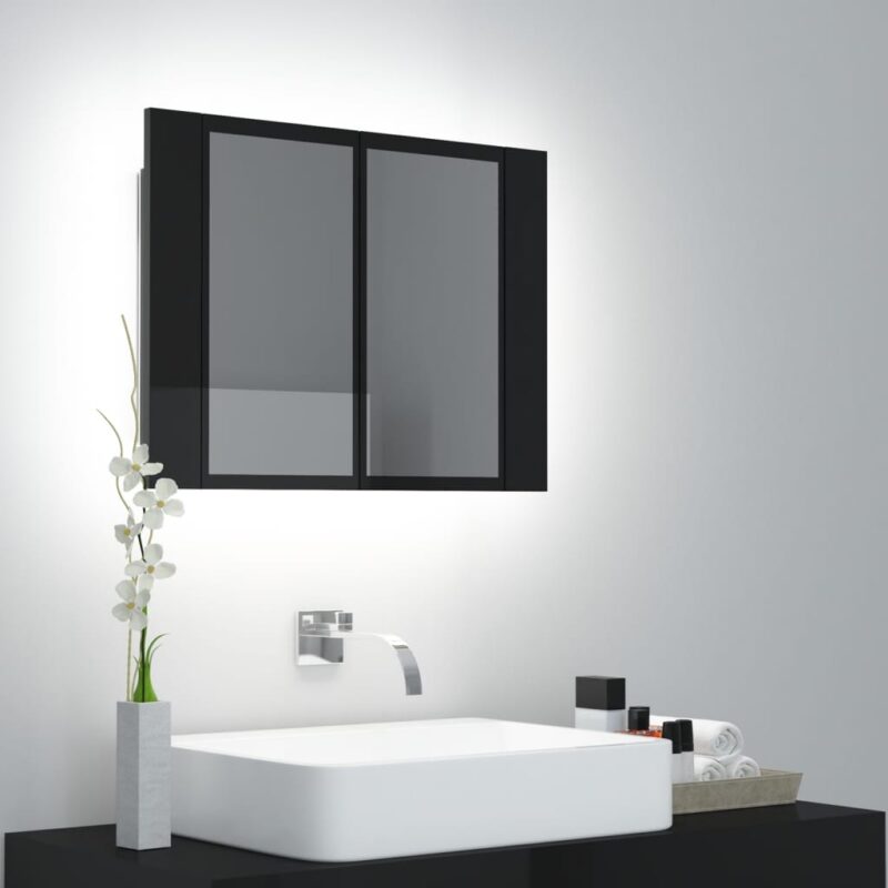 Offrez un éclat de modernité à votre espace Bain grâce à une Armoire à miroir de bain à LED Noir brillant 60x12x45 cm, combinant utilité et esthétisme. Cet élément essentiel va au-delà de la simple fonctionnalité, il métamorphose votre salle de bain en un lieu unique grâce à son éclairage LED RVB changeant de couleur, illuminant votre environnement de nuances diversifiées selon vos humeurs et vos besoins.