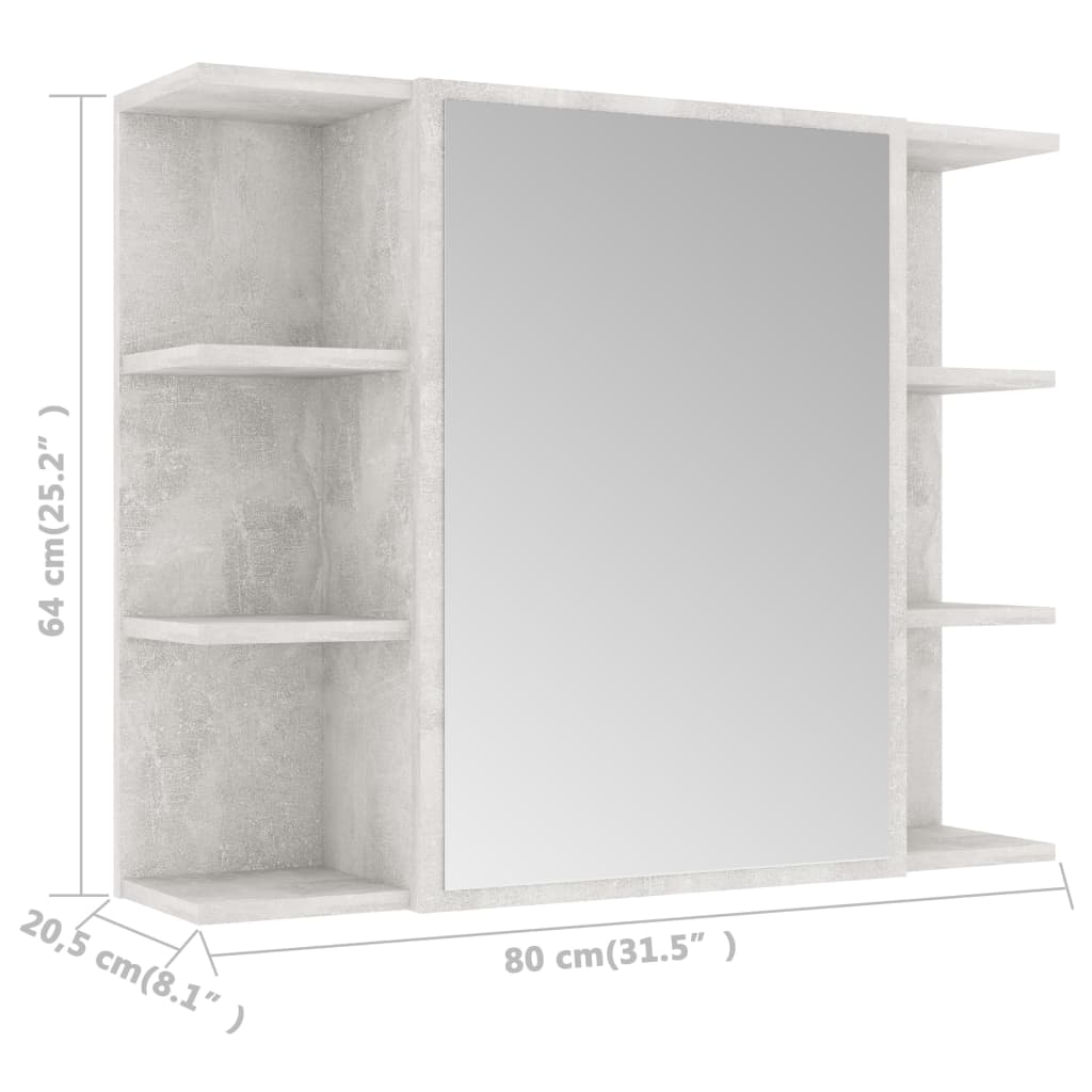 Armoire à miroir de bain Gris béton 80x20,5x64 cm Aggloméré 96.99