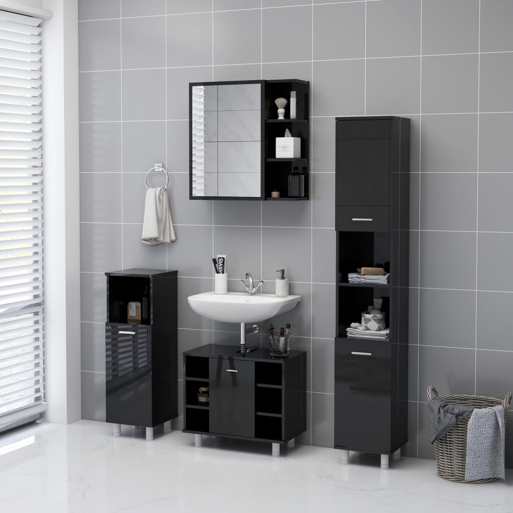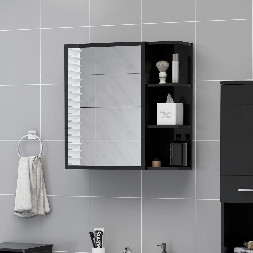 Sublimez votre salle de bain avec notre armoire à miroir de bain noir brillant 62,5×20,5x64cm aggloméré, conçue pour allier esthétique et fonctionnalité. Cette pièce de mobilier en aggloméré robuste garantit durabilité et ajoute une touche de modernité à votre espace. Ce meuble mural muni d’un miroir comprend une porte et cinq compartiments bien conçus pour organiser vos indispensables de salle de bain, des flacons de shampooing aux dentifrices, dans un encombrement minimal.