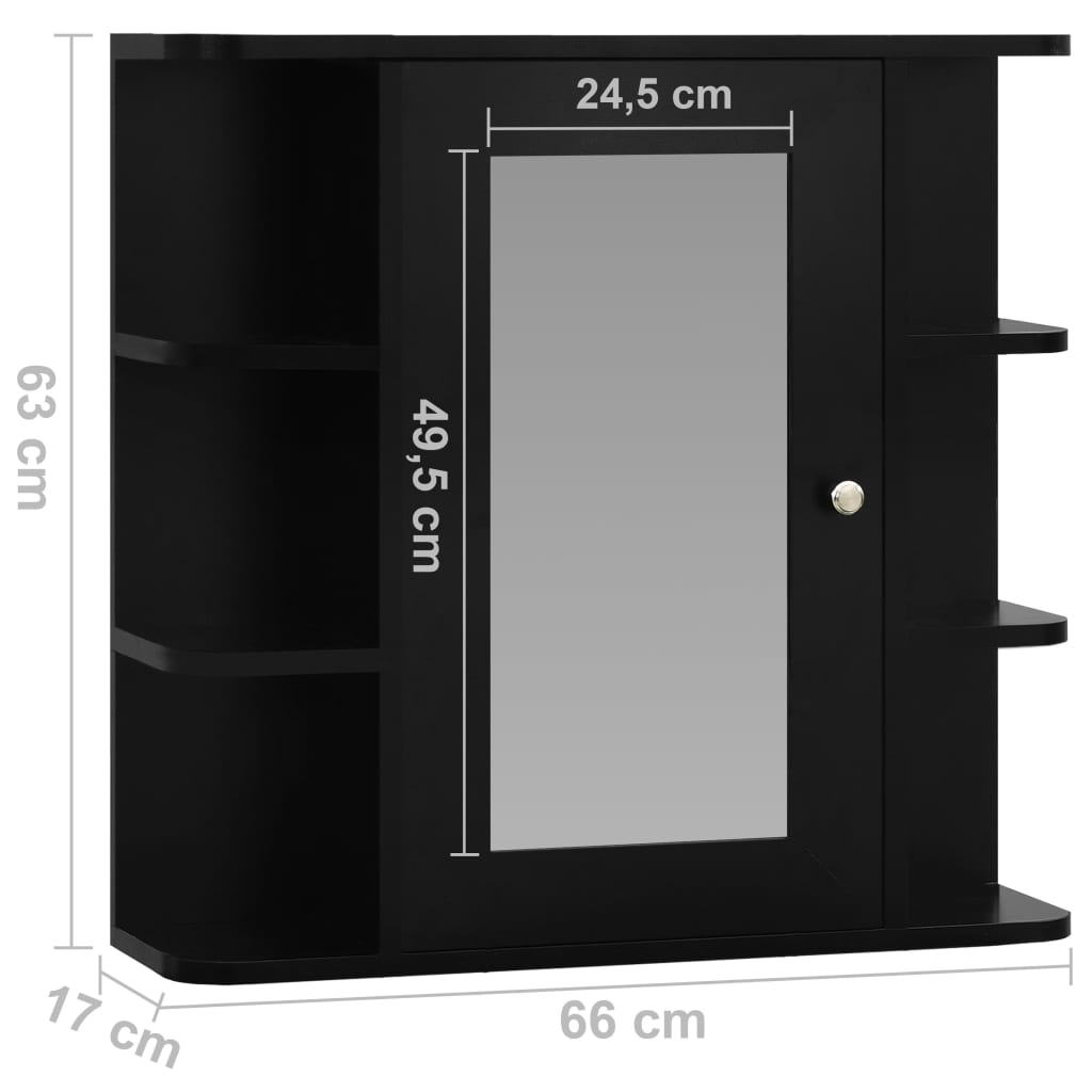 Armoire à miroir de salle de bain Noir 66x17x63 cm MDF