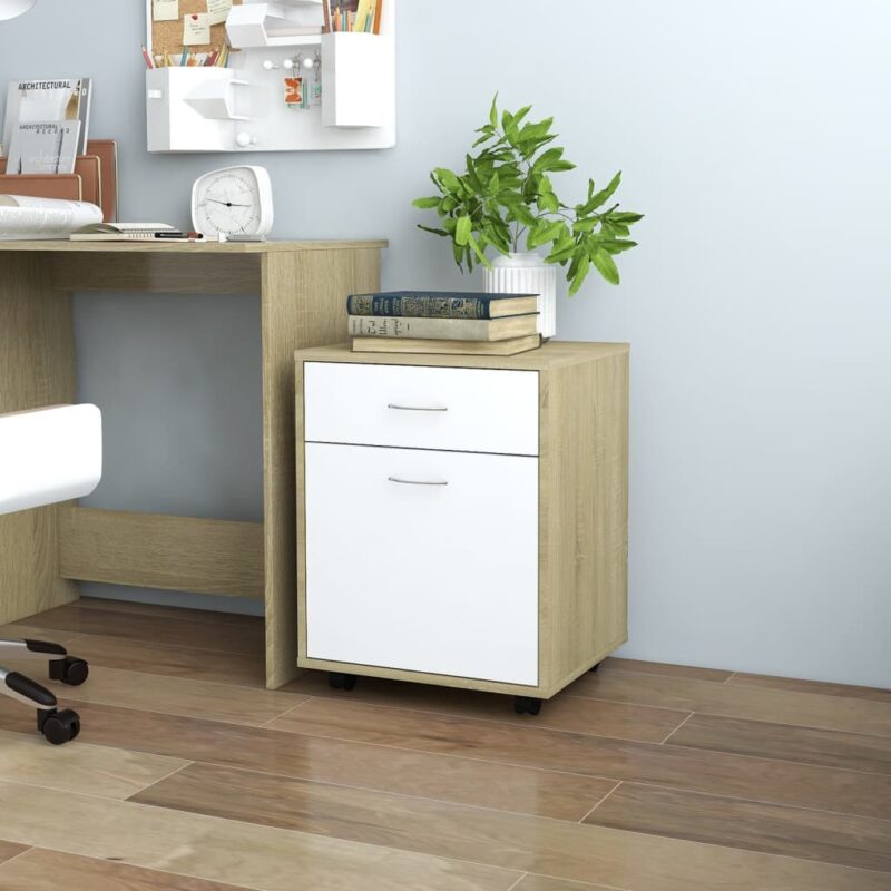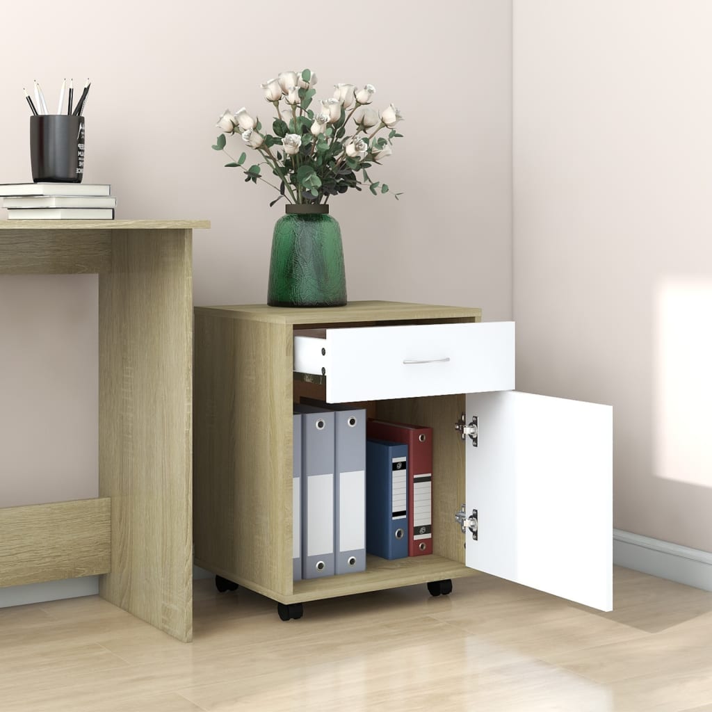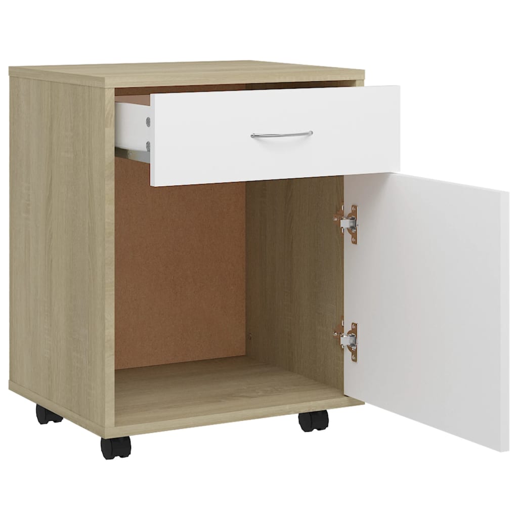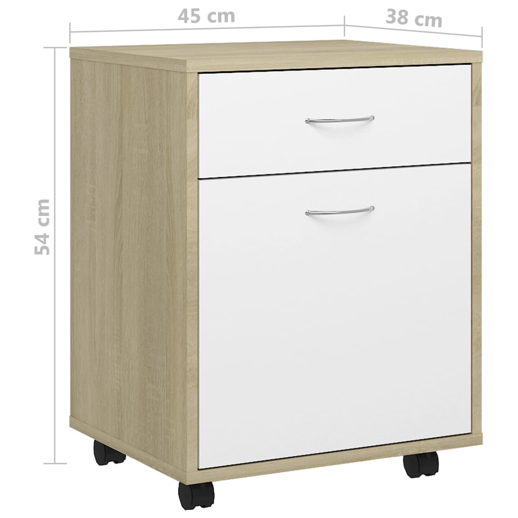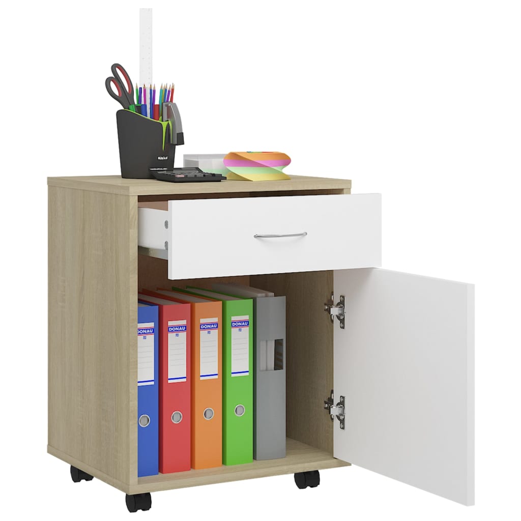 Armoire à roulettes Blanc et chêne Sonoma 45x38x54 cm pour un espace ordonné