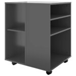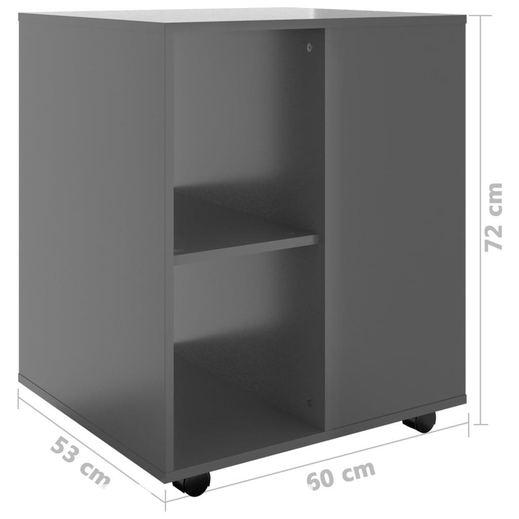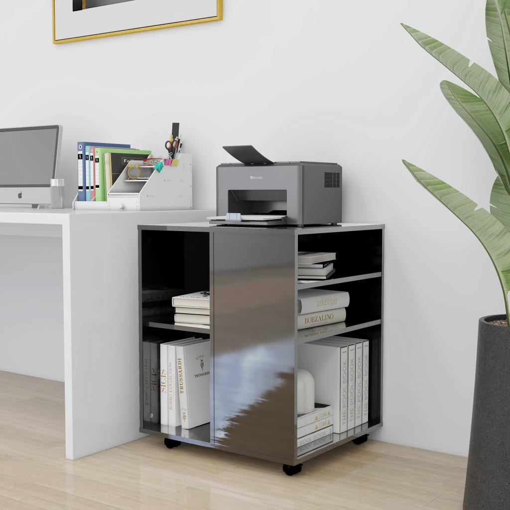 L’esthétique contemporaine rencontre la praticité dans cette Armoire à roulettes Gris brillant 60x53x72 cm Aggloméré, conçue pour s’harmoniser sans effort avec tout bureau moderne. Sa fabrication en aggloméré robuste garantit à la fois durabilité et facilité d’entretien. Un plateau supérieur plat fournit une surface idéale pour garder une imprimante à portée de main ou pour organiser vos fournitures importantes. Compacte, elle se glisse facilement sous ou à côté de votre espace de travail, optimisant ainsi votre surface de bureau. Les roulettes, dont deux avec frein, confèrent à l’armoire une mobilité optimale et polyvalente.