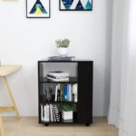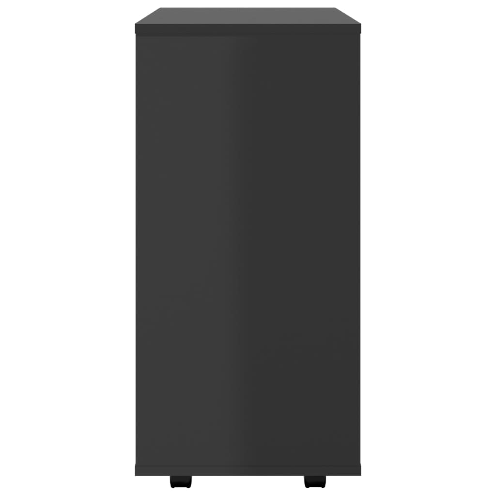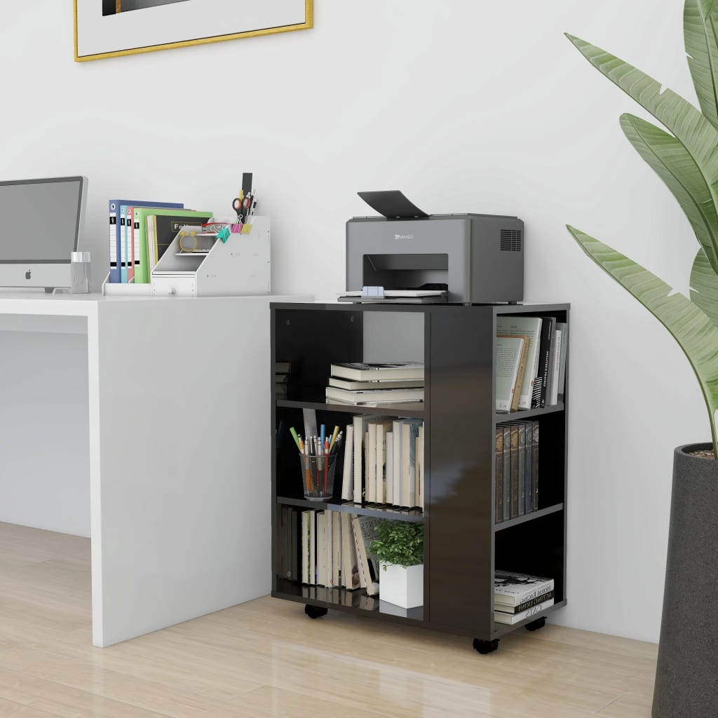 Vue de l'armoire à roulettes noir brillant 60x35x75 cm pour optimiser le rangement au bureau