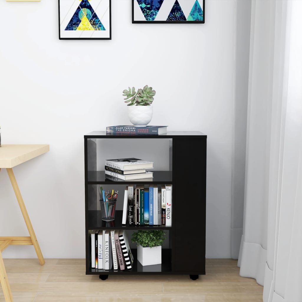 Armoire à roulettes Noir brillant 60x35x75 cm Aggloméré
