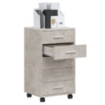 Cherchez-vous un meuble qui allie esthétique contemporaine et fonctionnalité? Notre Armoire à tiroirs avec roulettes Gris béton Bois d’ingénierie offre la solution idéale. Avec son allure moderne, ce mobilier de rangement se prête aussi bien à l’agencement d’un bureau professionnel qu’à l’organisation d’un espace de travail personnel.