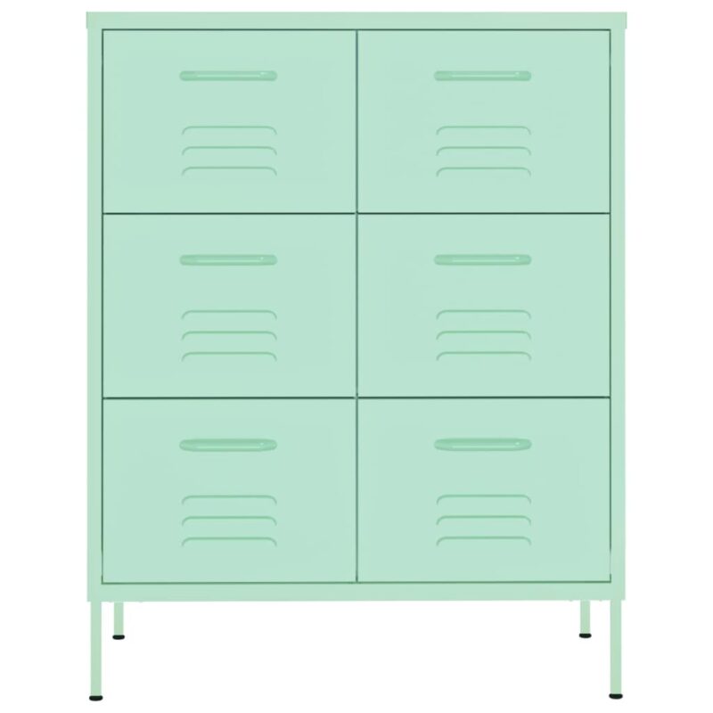 Faites place à l’organisation et au style avec notre Armoire à tiroirs Vert menthe 80x35x101,5 cm Acier. Conçue pour la durabilité et un usage pratique, elle est construite en acier de haute qualité, garantissant robustesse et stabilité. Avec ses 6 tiroirs spacieux, cette armoire est parfaite pour ordonner vos multimédias, votre collection de DVD, des livres ainsi que divers accessoires incontournables. Les glissières à billes tri-sectionnelles des tiroirs facilitent une ouverture souple et une fermeture aisée, et ce, même lorsque les tiroirs sont lourdement chargés. Ils sont également extensibles entièrement, vous donnant un accès facile à tout l’espace disponible. Un simple coup de chiffon humide suffit pour l’entretenir.