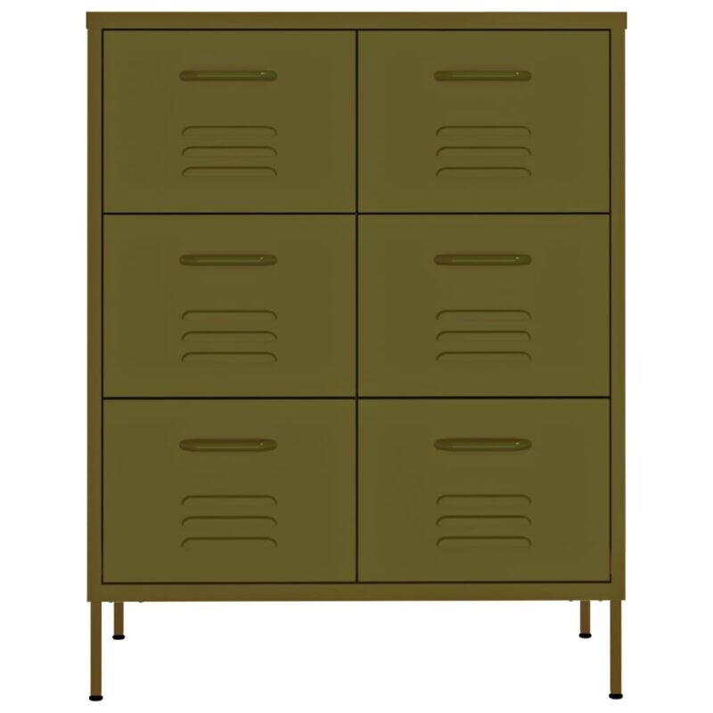 Optimisez l’ordre et l’apparence de votre intérieur avec notre armoire à tiroirs vert olive 80x35x101,5 cm acier. Sa conception en acier la rend résistante et fiable pour un usage quotidien. Avec ses six tiroirs spacieux, cette unité de rangement offre une solution idéale pour organiser vos DVD, équipements multimédias, livres et divers accessoires. Profitez d’un accès aisé à vos affaires grâce aux glissières à billes des tiroirs qui permettent une utilisation fluide et silencieuse, même sous un poids important. De plus, pour un entretien facile, un simple coup de chiffon humide suffit à la nettoyer.