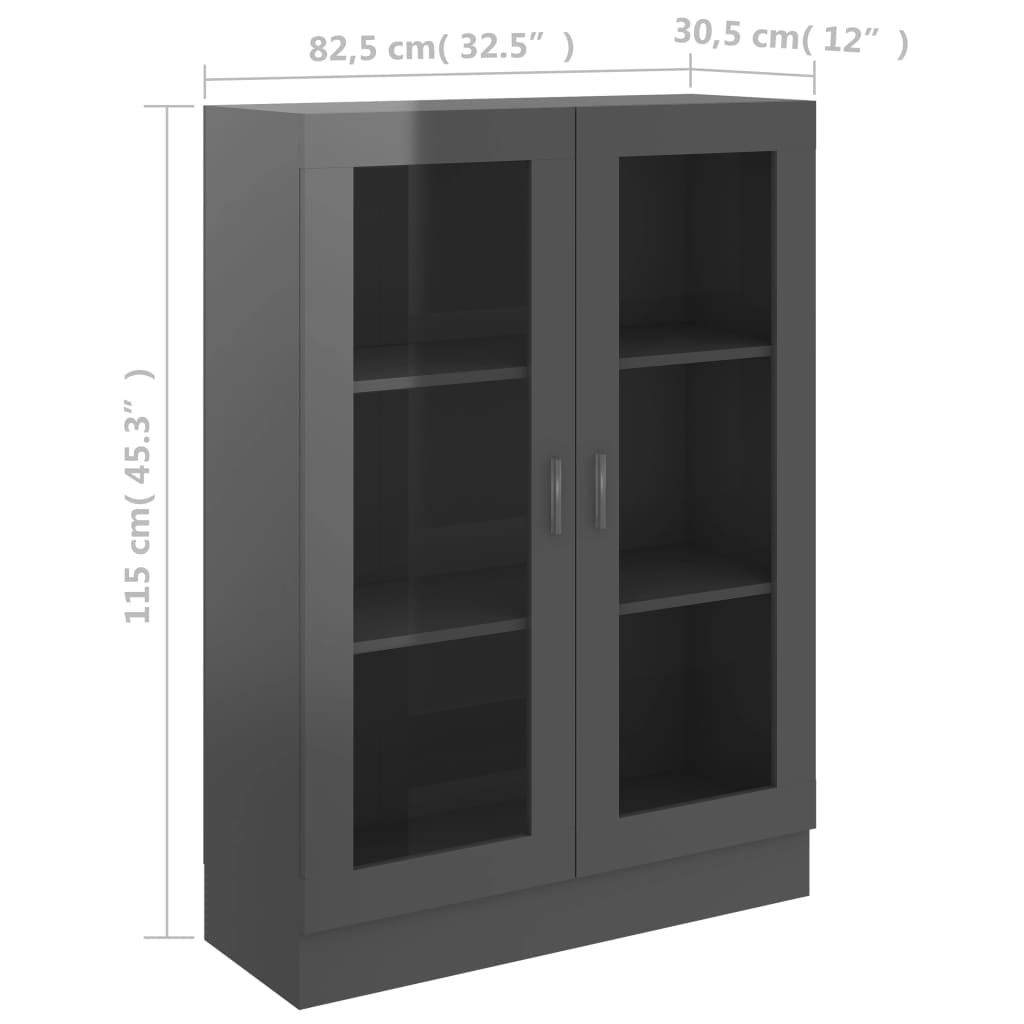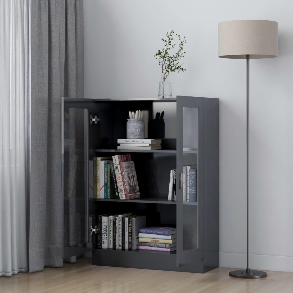 Optez pour un complément raffiné et utile à la décoration de votre intérieur avec notre armoire à vitrine gris brillant. Réalisée avec un aggloméré de premier choix, elle est conçue pour durer et pour résister au passage du temps. Avec ses 3 compartiments et ses 2 portes vitrées, cet accessoire est idéal pour exposer ou ranger vos indispensables tels que livres, collections de DVD et objets décoratifs, tout en les conservant à portée de main. De sa polyvalence découlent plusieurs utilisations : elle peut faire office d’étagère pratique dans divers espaces de votre logis. L’entretien est d’une simplicité enfantine, un coup de chiffon humide suffit pour la maintenir propre.