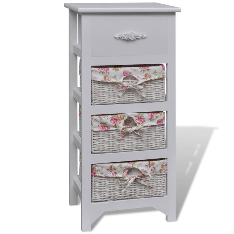Découvrez l’élégance du rangement allié à la praticité avec notre Armoire avec 1 tiroir et 3 paniers Blanc Bois de Paulownia. Cet élégant meuble, à la silhouette raffinée, est idéal pour apporter une touche de romantisme à votre intérieur. Offrant un espace de rangement optimal grâce à son tiroir et ses trois paniers, cet armoire est aussi robuste que séduisante. Son plateau supérieur solide vous permet de disposer vos objets de décoration, accentuant ainsi le charme de votre pièce.