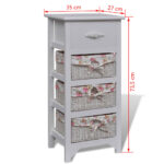Avec des mesures globales de 35 x 27 x 73,5 cm (longueur x profondeur x hauteur), l’armoire s’intègre aisément dans des espaces variés. Les paniers, quant à eux, mesurent chacun 26 x 20 x 12 cm, offrant une organisation parfaite pour vos accessoires et nécessités.