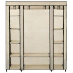 Conçue pour offrir une protection optimale à vos tenues et souliers contre les éléments, cette Armoire avec compartiments et tiges Crème 150x45x176 cm Tissu se montre idéale pour divers emplacements, incluant votre chambre, la pièce des enfants, ou même l’espace camping. Elle possède plusieurs sections de rangement et des tiges, et est équipée d’un couvercle enroulable fixé par des attaches velcro pratiques ainsi que de zips pour un accès simplifié.