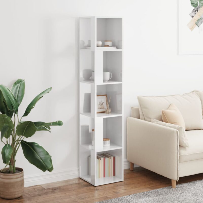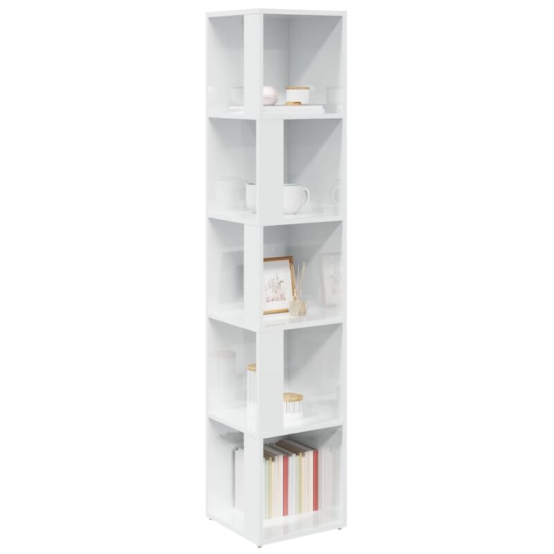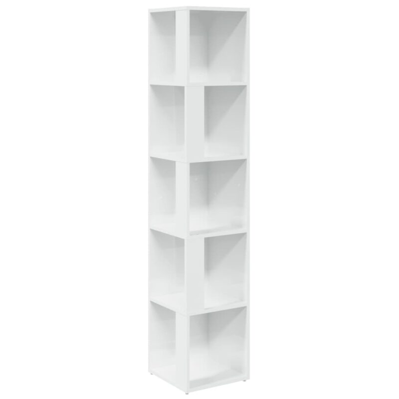L’Armoire d’angle Blanc brillant 33x33x164,5 cm Aggloméré s’invite dans votre intérieur pour donner une touche moderne et lumineuse. Son design élégant est parfait pour mettre en valeur vos objets déco tels que livres, CD et plantes sans surcharger l’espace. D’une stabilité reconnue, cet élément de mobilier vous promet durabilité et résistance. La conception à cinq compartiments assure une organisation optimale, tandis que la protection latérale vous évite les désagréments des objets tombant. Idéale pour les espaces restreints, cette armoire se glisse aisément dans un angle tout en offrant une capacité de rangement significative. Un simple coup de chiffon humide suffit pour son entretien.