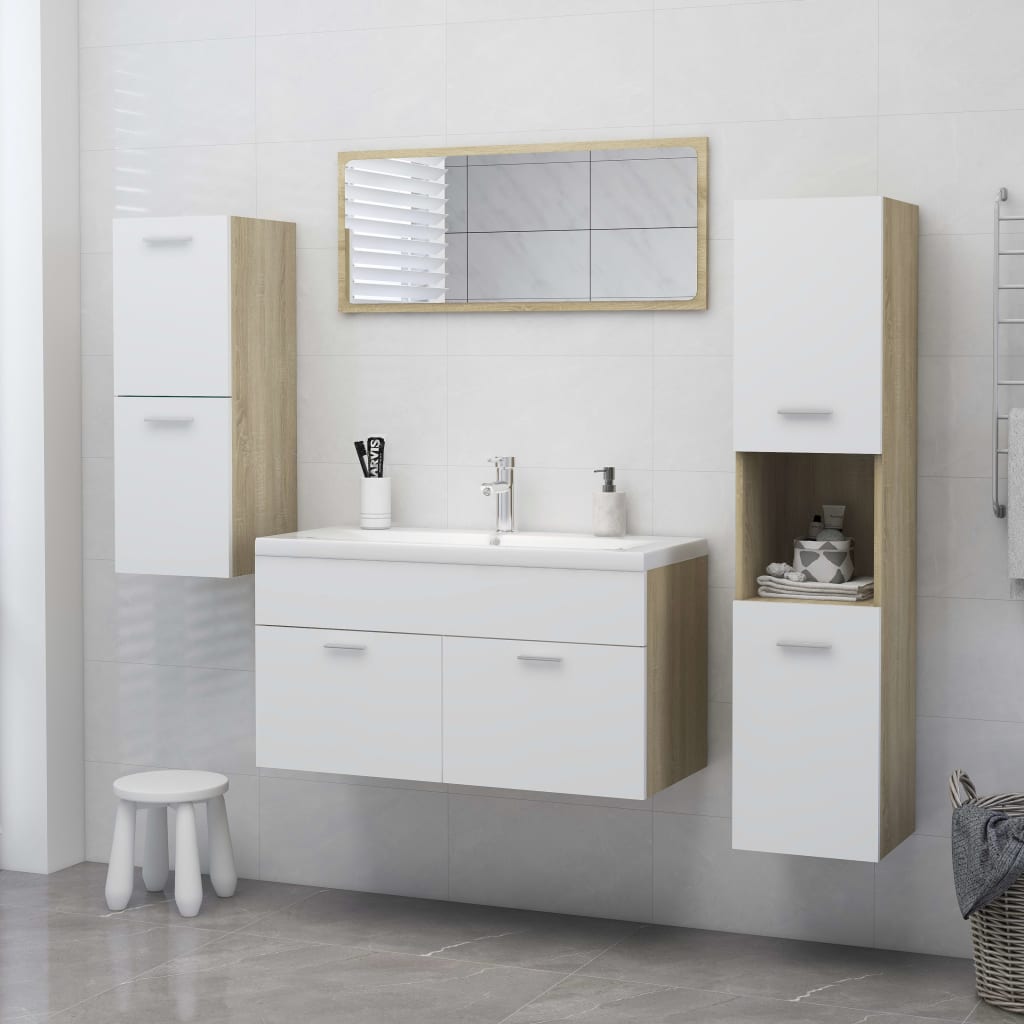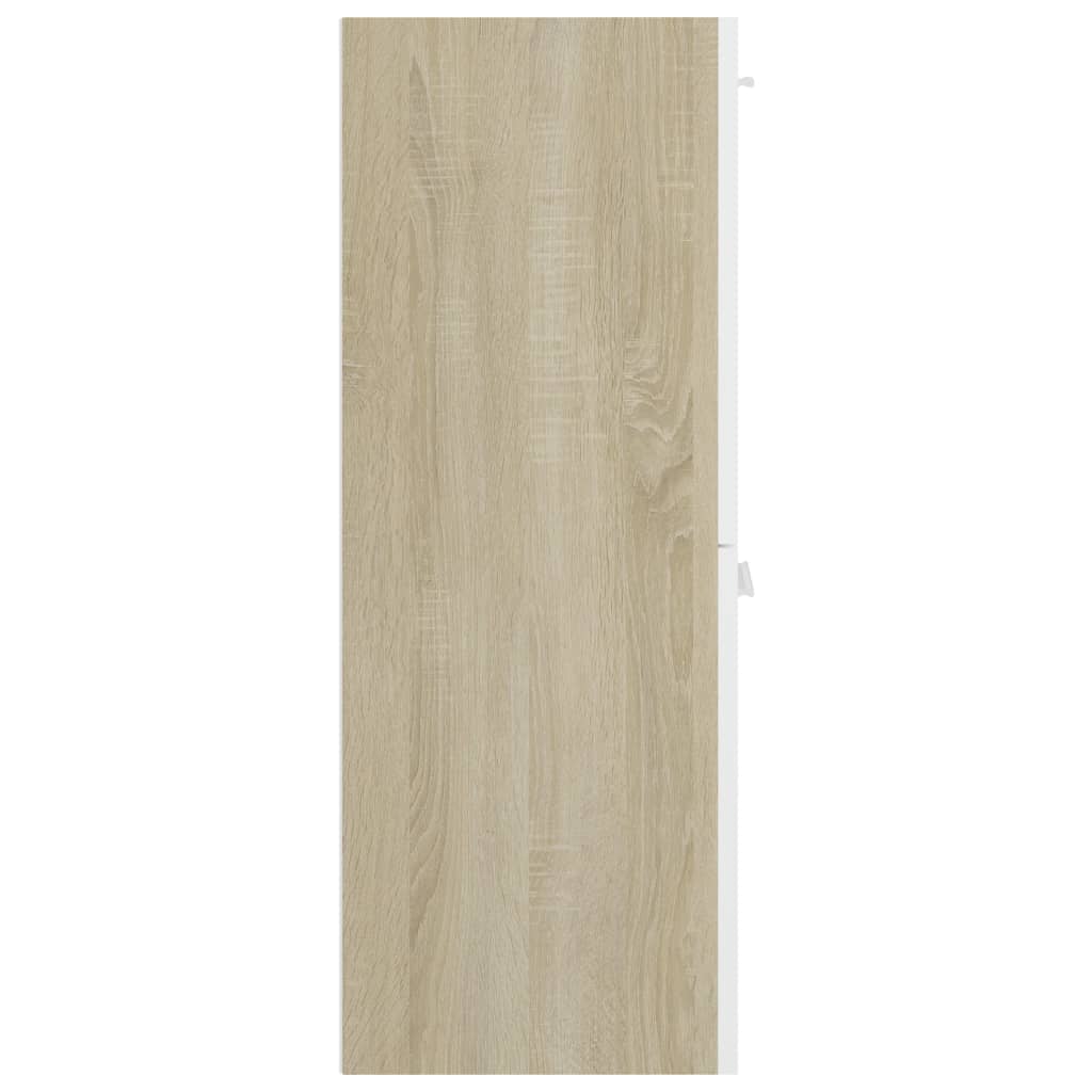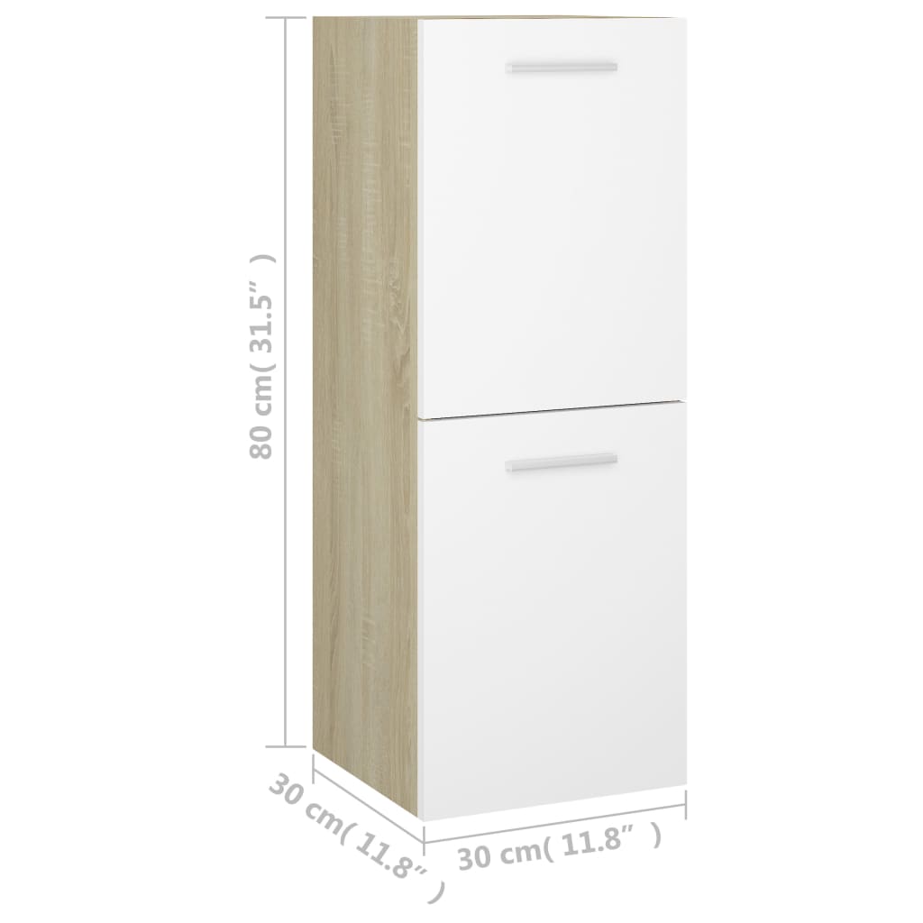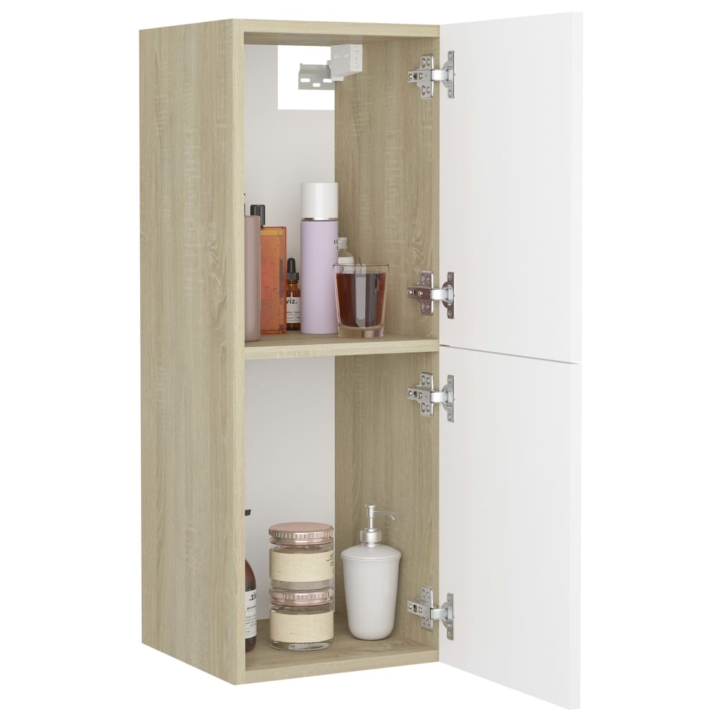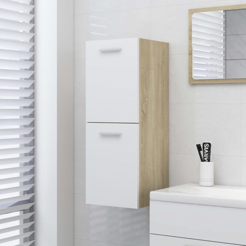 Optimisez l’utilisation de l’espace dans votre salle d’eau tout en apportant une touche d’élégance grâce à cette Armoire de bain Blanc et chêne sonoma 30x30x80 cm Aggloméré. Conçue pour s’harmoniser sans effort avec l’esthétique de votre salle de bains, cette armoire séduit par ses lignes nettes et son allure sophistiquée. Fabriquée à partir d’aggloméré de haute qualité, cette armoire se distingue par sa durabilité et sa structure stable.
