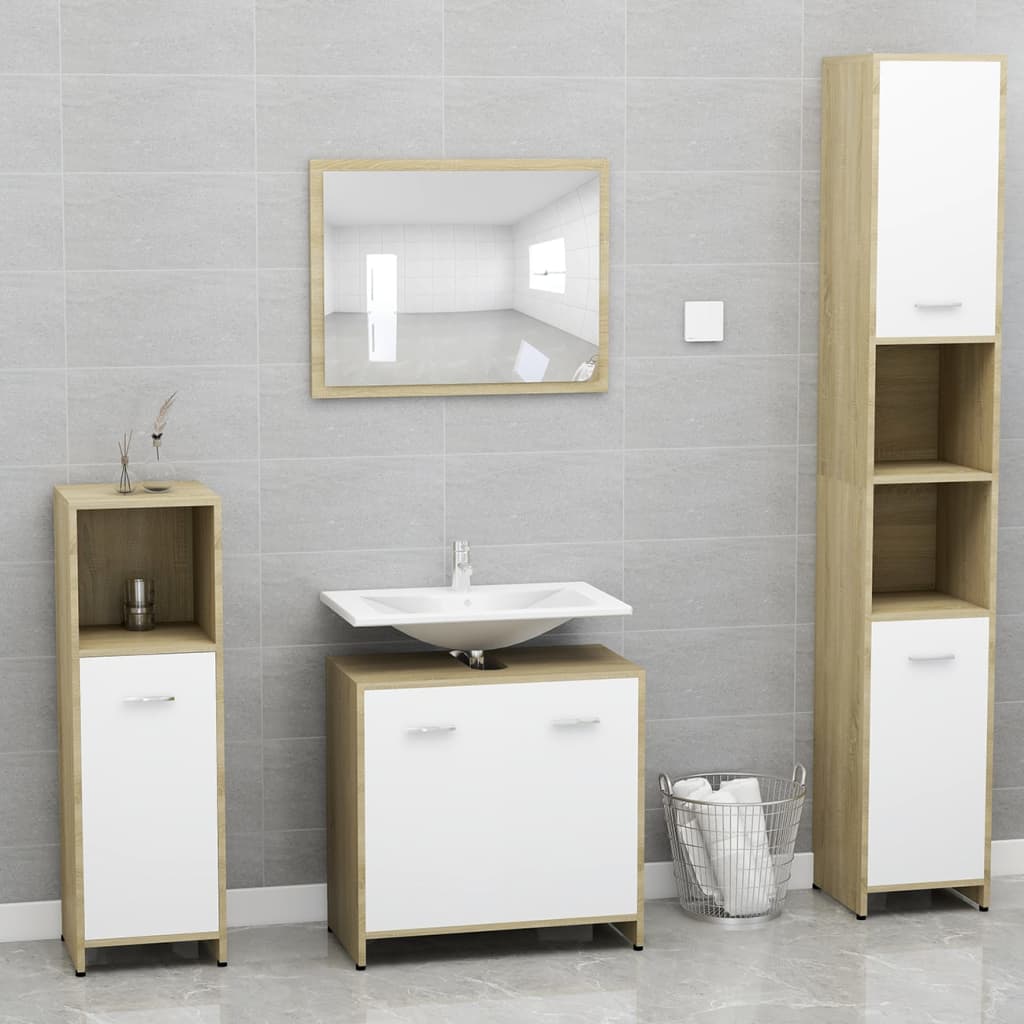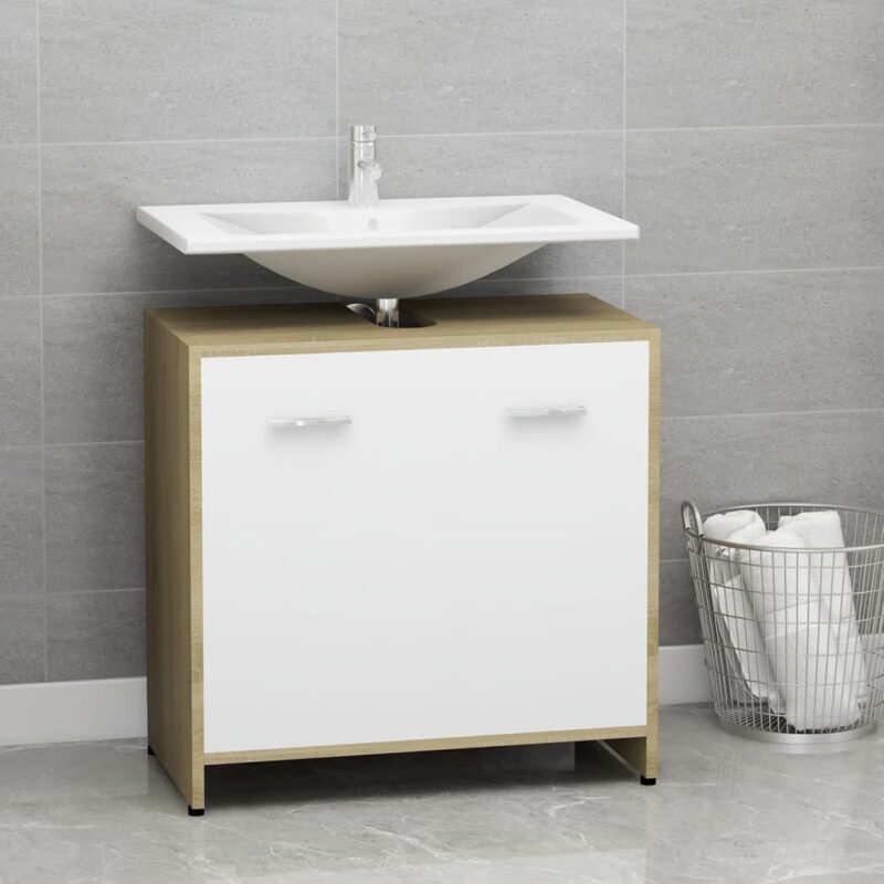 Maximisez l’espace de votre salle de bains avec notre armoire blanche et chêne sonoma