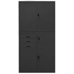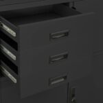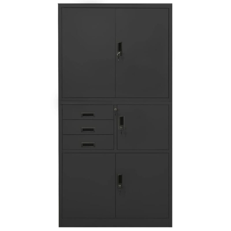 Optimisée pour organiser et sécuriser vos documents, cette Armoire de bureau Anthracite 90x40x180 cm Acier se distingue par sa robustesse et son efficacité dans le rangement de vos dossiers. Conçue en acier de première qualité, elle promet longévité et entretien aisé. Son espace interne comprend un compartiment sécurisé et trois étagères que vous pouvez ajuster selon vos besoins pour une classification personnalisée de vos documents. Les tiroirs équipés de glissières à billes trois sections garantissent une manipulation douce et fiable, même sous plein chargement.